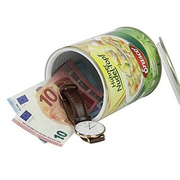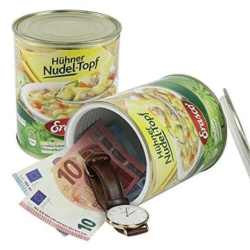 Du hast keine Lust mehr darauf, dass dein kleinkrimineller Nachwuchs oder deine durchtriebene Frau ständig mit ihren klebrigen Finger nach deinem Ersparten grabschen? Dann brauchst du dringend diesen „Hühner Nudeltopf“-Dosensafe! Darin kannst du deinen sauer verdienten Lohn sicher vor ihren gierigen Blicken verstecken. Die Gefahr, dass der attraktive Inhalt in der abtörnenden Verpackung vermutet wird, ist gleich Null!